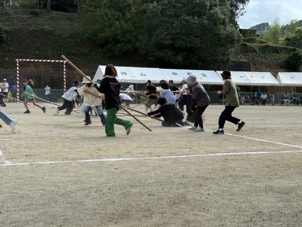 令和7年(2025)9月7日(日)8時30分より、旧白木小学校グラウンドにて「筑南スポーツフェスティバル」が午前中に開催されました。今年は、白木と北山地区地域振興会議の共催となって2年目です。両地区から選出された筑南スポーツフェスティバル実行員会の方々を中心に企画されたプログラムにそって競技が実施されました。今年は、蓑原新八女市長にもご出席を賜り、市長ご自身もたくさんの競技(百足競争、ラブ2レース、玉入り、水風船キャッチ、クラブ対抗リレー、立花音頭、ウルトラクイズなど)にご参加いただきました。
