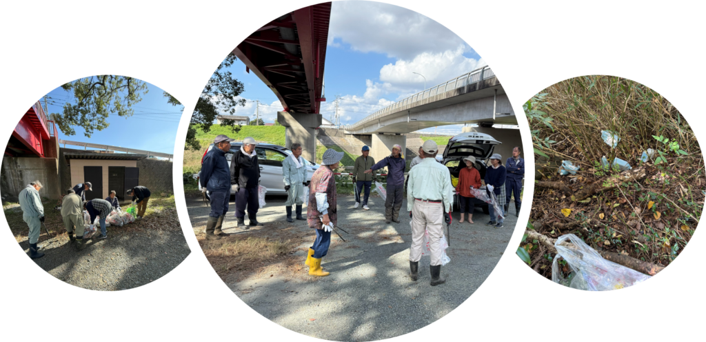 2025年11月1日(土)午後1時30分より約1時間、北山地区行政1区と2区の有志約20数名が中川原橋下に集まり、北山地区地域振興会議の恒例行事である矢部川の千間土居の清掃活動を実施しました。